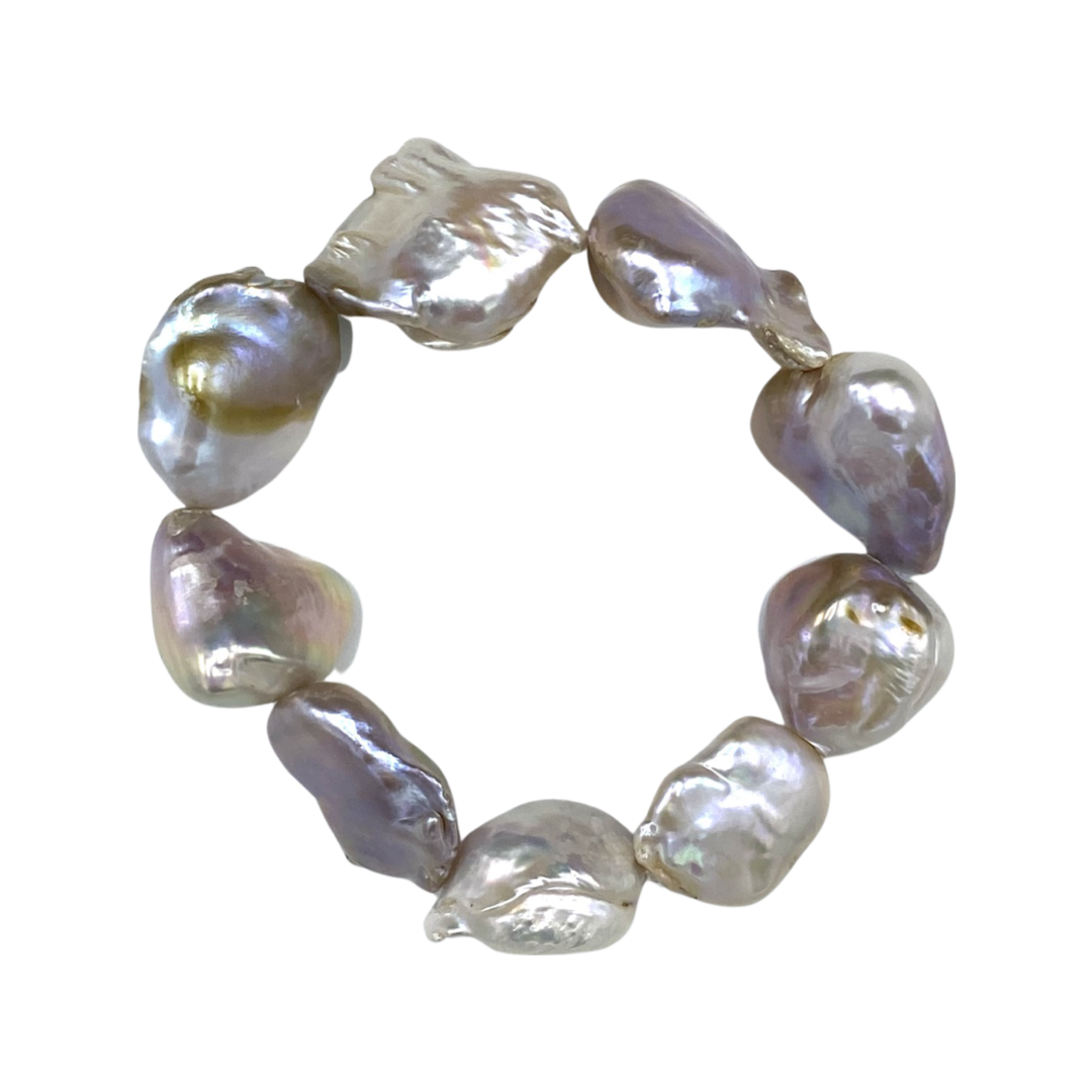 Artisanal and effortless, this 7.5" bracelet features pink freshwater stone pearls double-knotted on elastic for a perfect, flexible fit. Combining organic texture with everyday comfort, it’s a versatile staple that slides on in seconds. Matching necklace available!